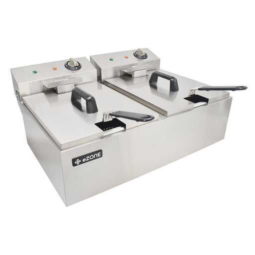 eZone Commercial Electric Fryer Single Tank 2x5Ltr 2x3kW 2x13A UK Plug Countertop Heavy Duty Stainless Steel Ideal for Restaurants Takeaways