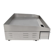 The griddle smooth stainless steel body ensures cleaning is easier and simplified. The griddle also features side splash guards which is very useful to keep areas around the griddle clean.